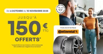 Promotion pour l’achat de pneus Continental 2025 Du 6 octobre au 15 novembre 2025, profitez de…