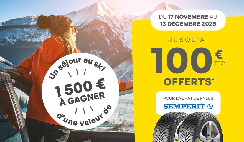 Du 17 novembre au 13 décembre, jusqu’à 100€ offerts pour l’achat de pneus de la marque Semperit et un séjour au ski d’une valeur de 1 500€ à gagner !